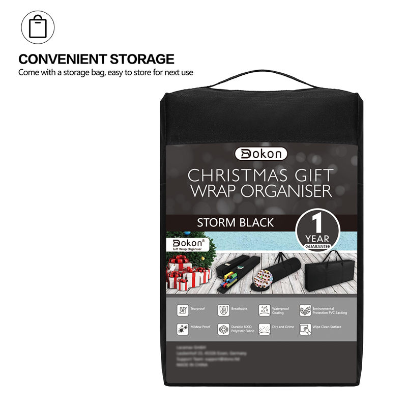 Home >  Product >Dokon Gift Wrap Sleeve (2 Pieces), Waterproof Oxford Fabric Christmas Wrapping Paper Storage, Bag, Organiser with Pockets (74x13cm) - Black
