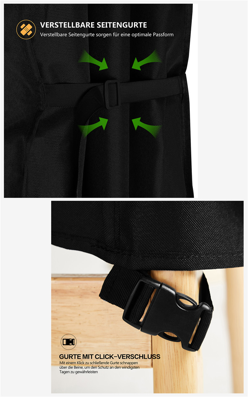 【Windproof, Secure Fit】- There are Four Click-Close Straps and two adjustable Straps on table tennis cover. Which was special designed to keep table tennis cover secure on the table, so that the table tennis cover will not be blown away by wind